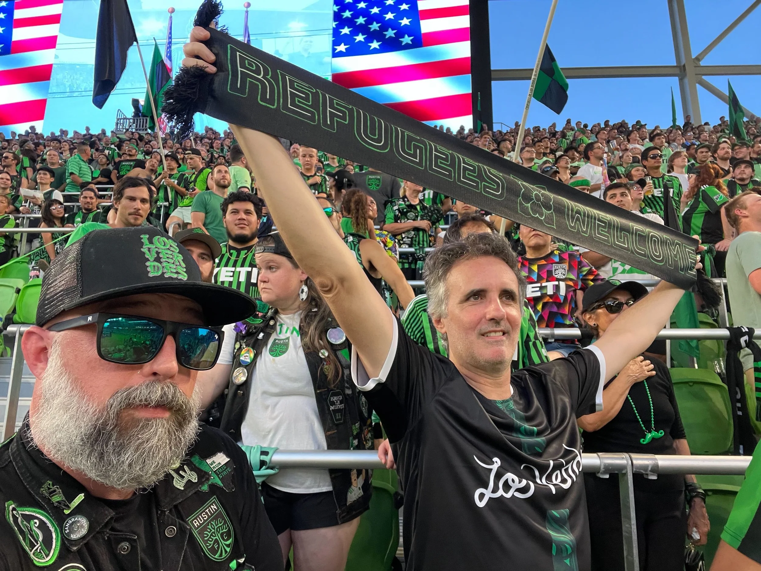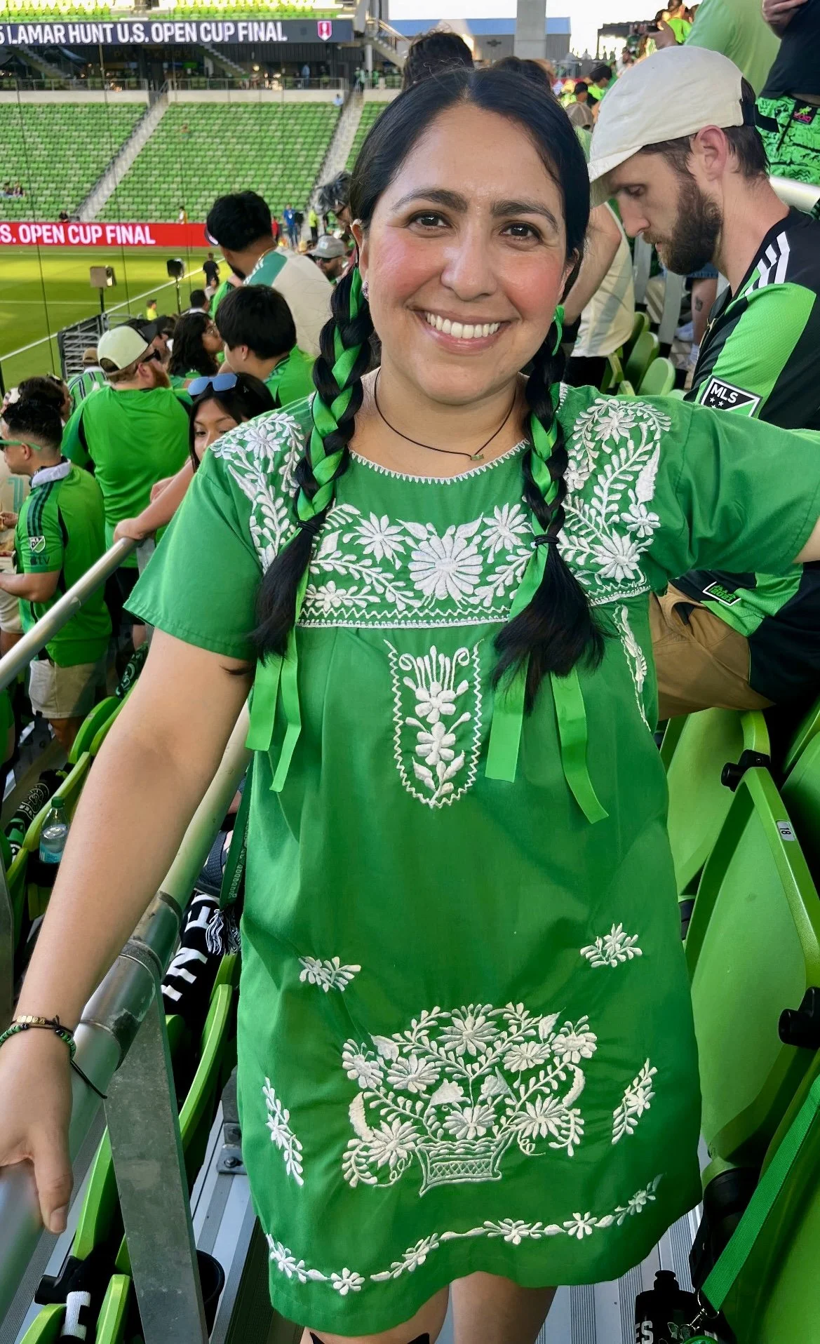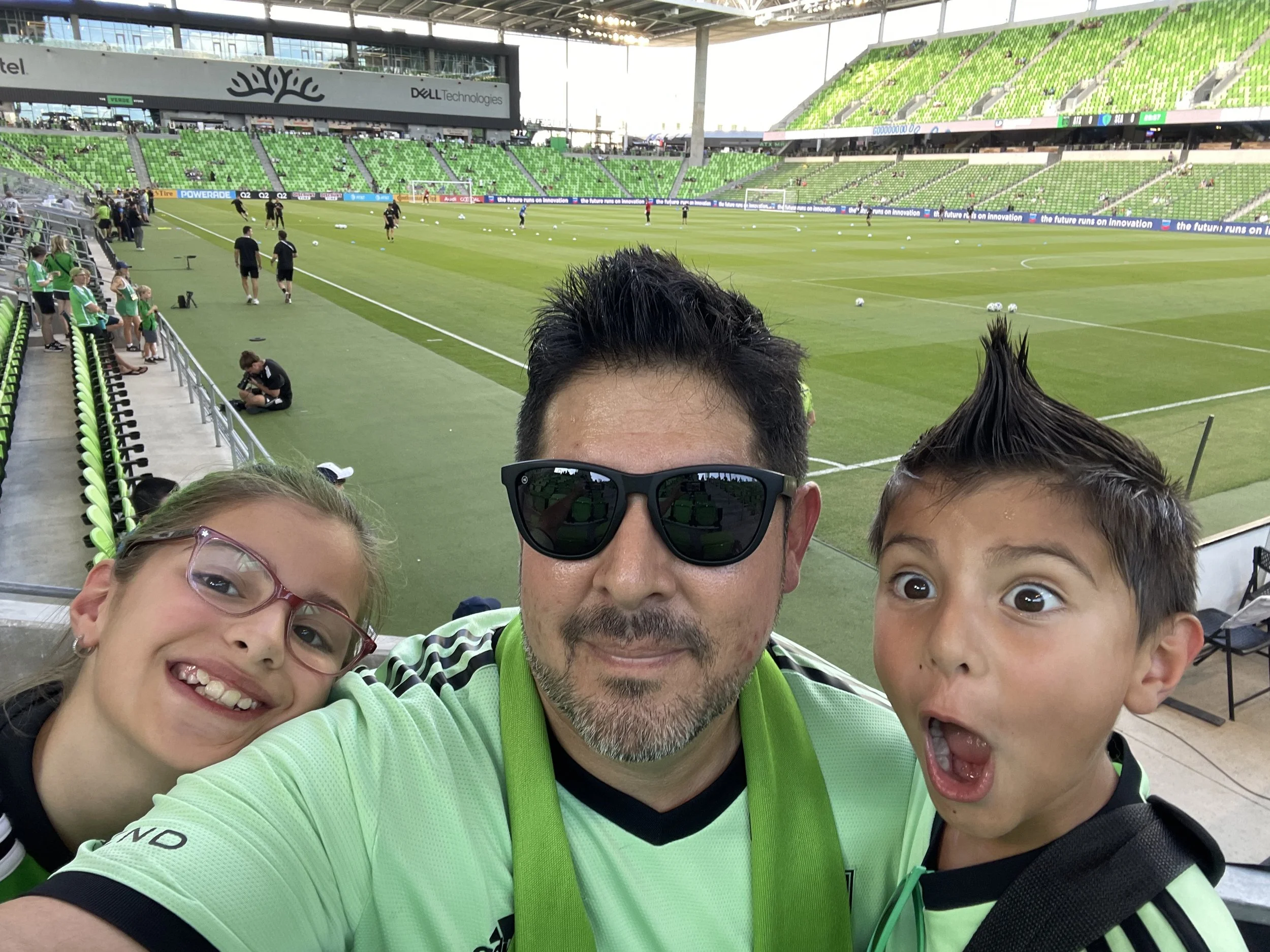 Me aficioné al fútbol y al Austin FC cuando la empresa para la que trabajaba me regaló entradas para un partido en 2021. Le prometí a mi hija mayor que la llevaría la temporada siguiente, y esa promesa nos llevó al caos de la venta de entradas de Los juegos del hambre y, finalmente, al corazón de Los Verdes. Desde entonces, nos hemos volcado en ello.